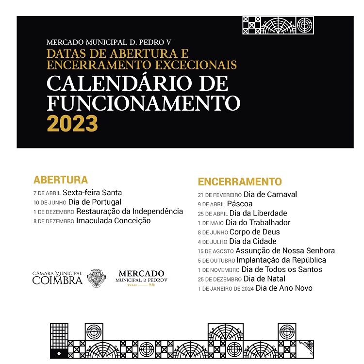 O Mercado Municipal D. Pedro V, na Baixa de Coimbra, já tem o calendário dos dias em que fecha e está aberto durante este ano.